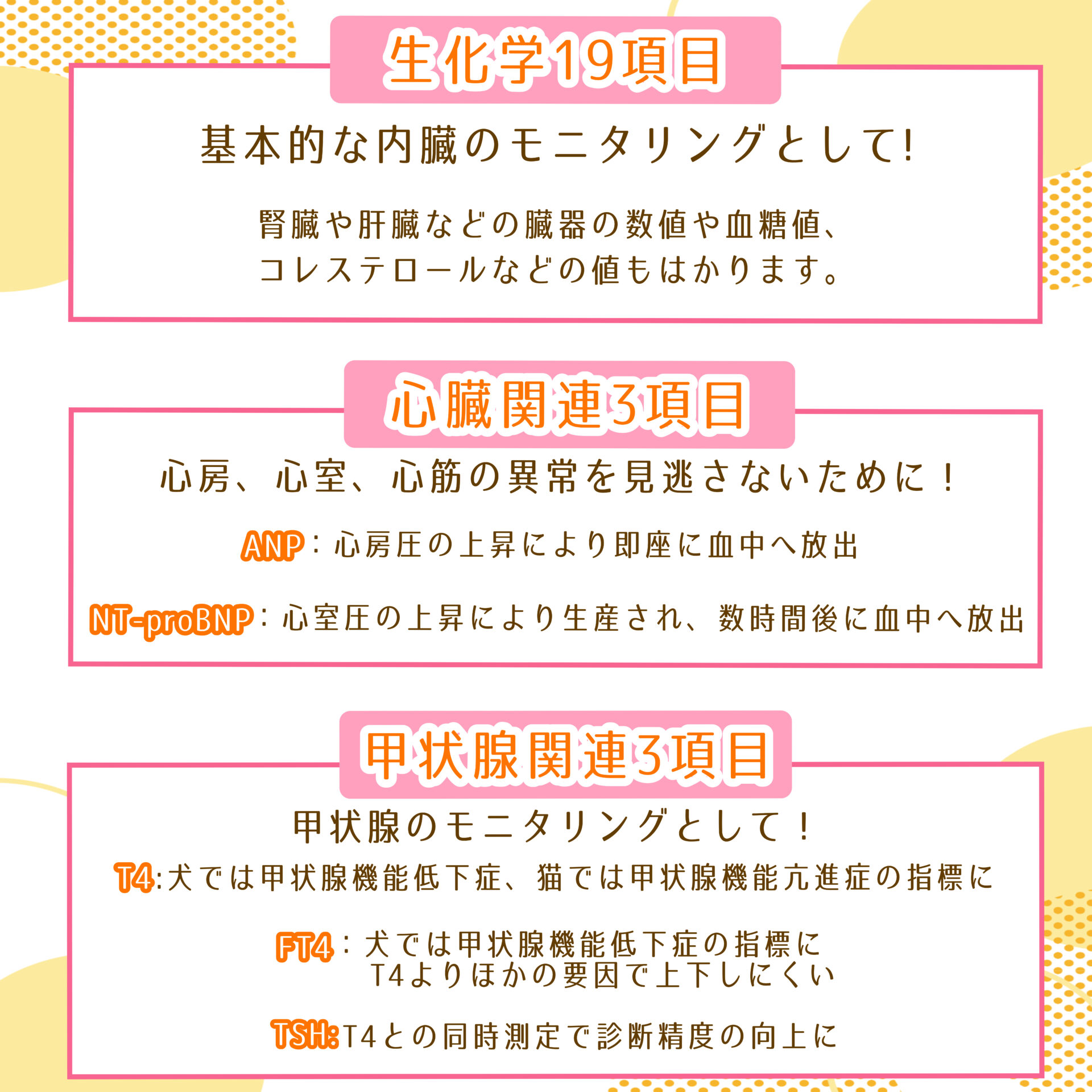 わん・にゃんドックでは通常の生化学検査19項目に加えて