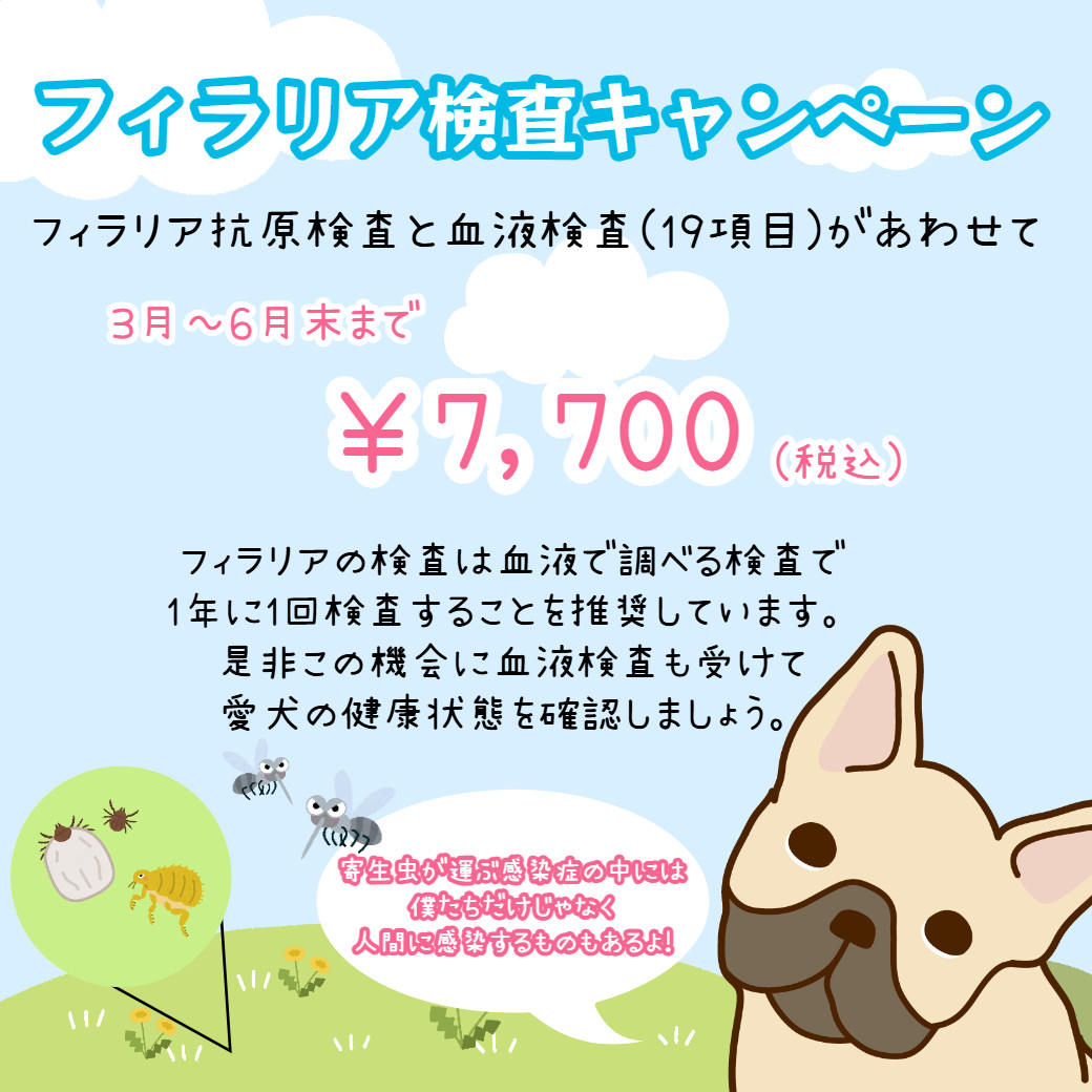 3月〜6月はフィラリア検査➕血液検査(19項目)がお得に出来ます‼️